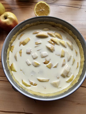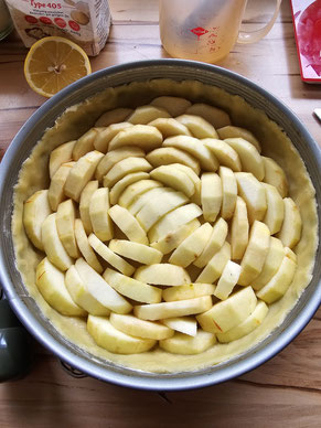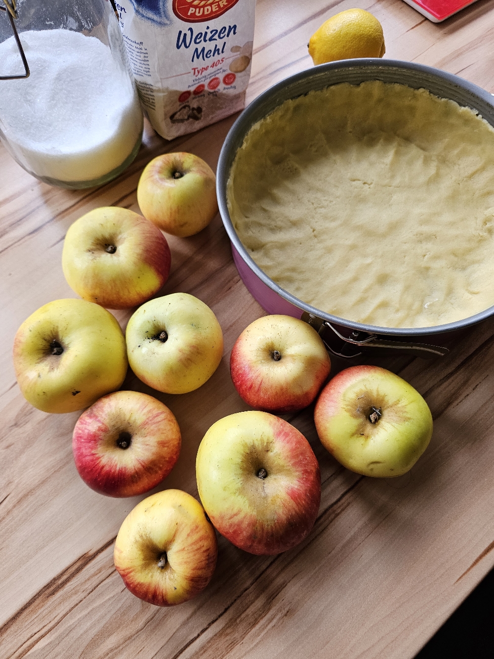 Über den Teig lässt sich ja streiten. Ich bevorzuge hier eine klassischen Mürbteig, da ich die Kombination vom süßen Kuchenboden und den säuerlichen Äpfeln so gerne mag.